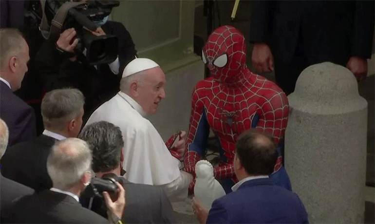 O Πάπας Φραγκίσκος είναι συνήθως ο πρωταγωνιστής στις συγκεντρώσεις στο Βατικανό, όμως ο Spider-Man, πιο συγκεκριμένα, ένας Ιταλός που ντύνεται όπως ο φανταστικός χαρακτήρας των βιβλίων κόμικ και ταινιών ήταν εκείνος που προσέλκυσε τα βλέμματα του κοινού κατά τη διάρκεια της καθιερωμένης εβδομαδιαίας ακρόασης στην Αγία Έδρα.