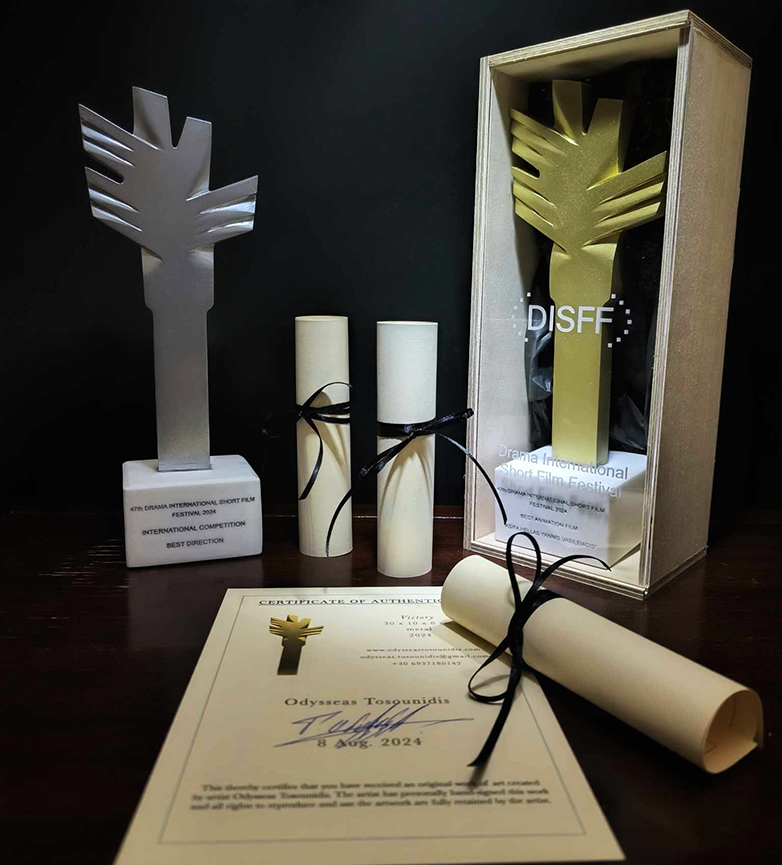 Ο πολιτισμός και η πλούσια ιστορική παράδοση της ακριτικής Δράμας αποτυπώθηκαν στο αγαλματίδιο που εμπνεύστηκε και φιλοτέχνησε ο καταξιωμένος Δραμινός γλύπτης, Οδυσσέας Τοσουνίδης, για λογαριασμό του 47ου Φεστιβάλ Ταινιών Μικρού Μήκους (47ου DISFF).
