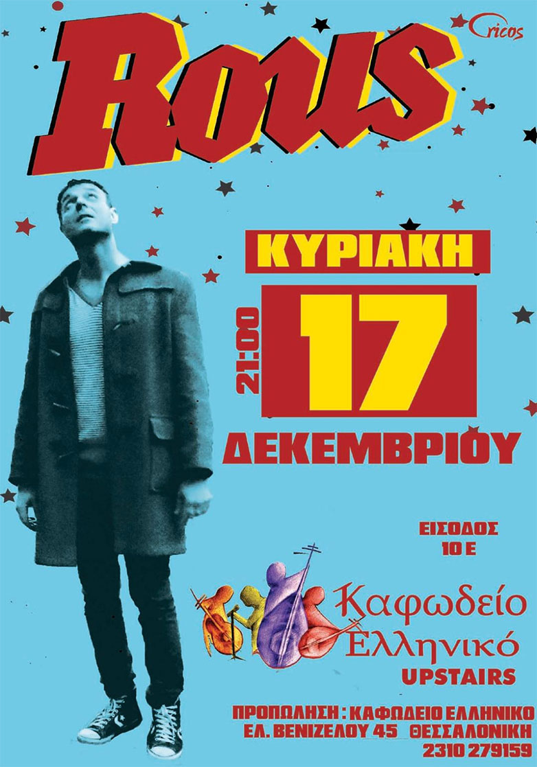 Έπειτα από μια σειρά επιτυχημένων μυσταγωγικών εμφανίσεων σε όλη τη χώρα, ο Γιώργος Ρους έρχεται στο Καφωδείο Ελληνικό upstairs στη Θεσσαλονίκη, σήμερα (Κυριακή 17 Δεκεμβρίου), για ένα ξεχωριστό ταξίδι σε ήχους και στίχους, με μουσικές εκπλήξεις και δίνοντας το σύνθημα πως όλα είναι μια αρχή! Πολυτάλαντος και ρομαντικός, γεμίζει κάθε φορά τη σκηνή με θετική ενέργεια. Η έμπνευση έρχεται μέσα από εικόνες και κάθε του τραγούδι είναι μια μυθοπλασία με ήρωες και πάθη που κεντρίζουν το ενδιαφέρον.