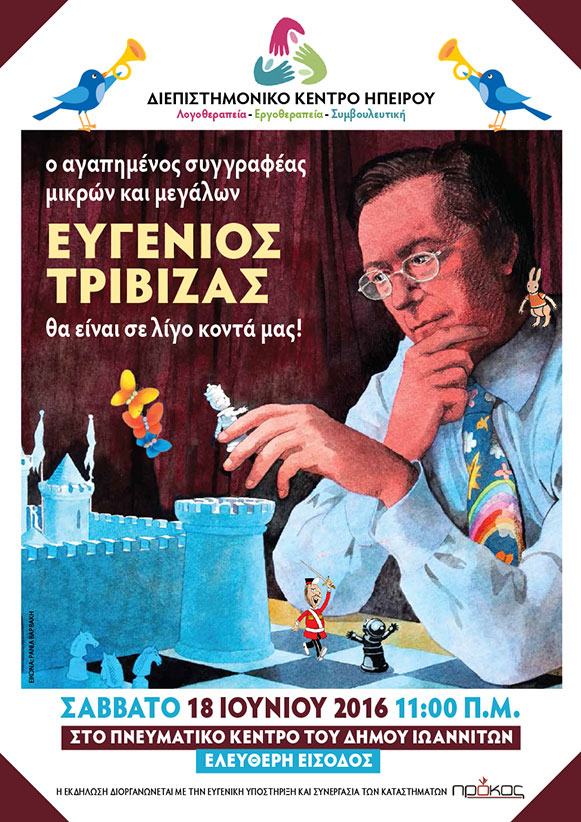 Οι υπεύθυνοι του Διεπιστημονικού Κέντρου Ηπείρου, Ελευθέριος Μέλιος και Μαρία Ιγνατίου, εκφράζουν τις θερμές ευχαριστίες στο πρόσωπο του Ευγένιου Τριβιζά και με χαρά προσκαλούν τους μικρούς του αναγνώστες αλλά και όσους μεγάλους αισθάνονται παιδιά να ακολουθήσουν τον αγαπημένο συγγραφέα στους μαγικούς του κόσμους.