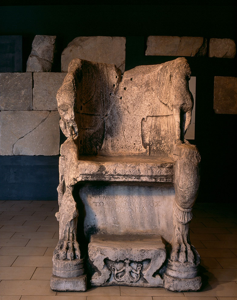 Εκτός όμως από το χαμένο στις μέρες μας «Ποταμώνιο», αφιέρωσαν στον πραγματικό «Σωτήρα» τους και το θρόνο για να μη στέκει όρθιος και να παρακολουθεί στο αρχαίο θέατρο καθιστός τα διαδραματιζόμενα.