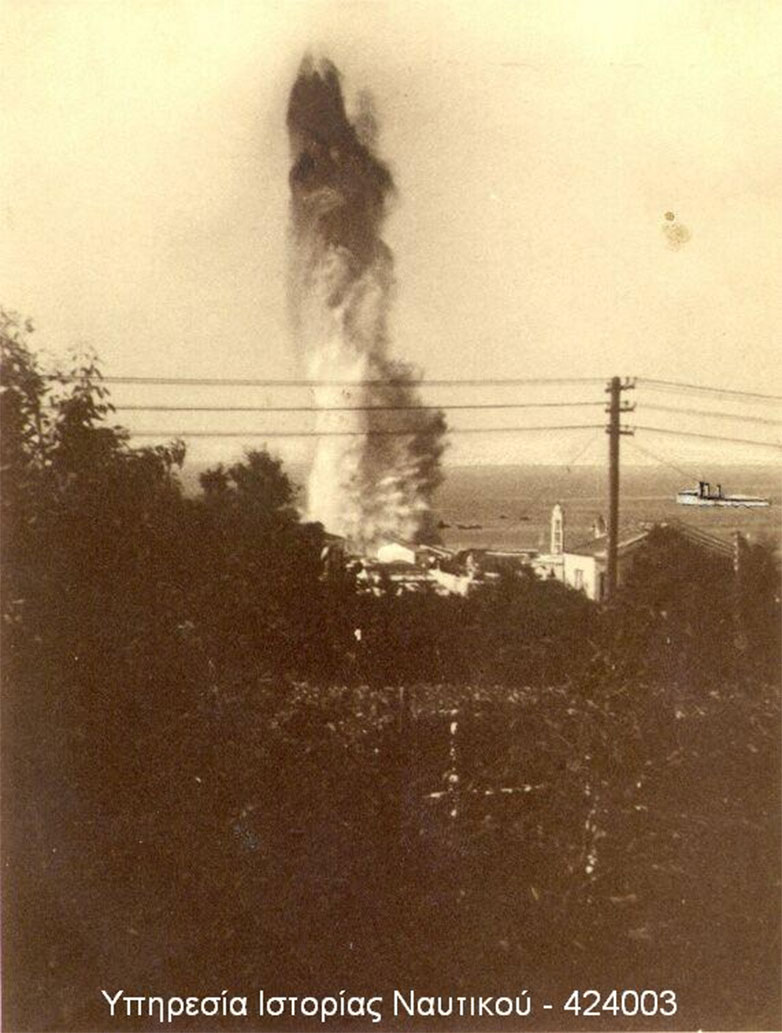 Στις 8.25 π.μ., λίγη ώρα πριν από τη λιτάνευση της εικόνας της Παναγίας κι ενώ στην παραλία υπήρχε πολύς κόσμος, το «Ντελφίνο» έπληξε με τρεις τορπίλες το ελληνικό πολεμικό πλοίο. Η μία μόνο τορπίλη βρήκε στόχο, αλλά έπληξε καίρια το ελληνικό πλοίο στο μηχανοστάσιο και τις δεξαμενές πετρελαίου. Μία ώρα αργότερα, το «Έλλη» βυθίστηκε, παρά τις προσπάθειες του πληρώματος να το κρατήσουν στον αφρό. Οι άλλες δύο τορπίλες αστόχησαν και εξερράγησαν στην προκυμαία. Από την επίθεση του «Ντελφίνο» σκοτώθηκαν ένας υπαξιωματικός και οκτώ ναύτες του «Έλλη», ενώ οι τραυματίες ανήλθαν στους 24. Μία γυναίκα, που βρισκόταν στην παραλία, πέθανε από καρδιακή προσβολή μετά την έκρηξη της δεύτερη τορπίλης στην προκυμαία.