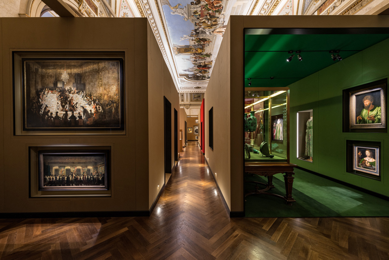 Η προσέγγιση των Anderson και Malouf βασίστηκε, όπως έχουν δηλώσει, στη διαίσθηση και τον ενθουσιασμό. Όπως και στην περίπτωση του Warhol, επέλεξαν τα έργα δίχως να δώσουν σημασία στην σπανιότητά, την προέλευση ή την ιστορία τους. Έτσι, για παράδειγμα, συνομιλούν: Ένα σμαραγδένιο αγγείο με ένα πράσινο κοστούμι από παράσταση της Έντα Γκάμπλερ το 1978, ο πίνακας του επτάχρονου εκτροφέα γερακιών (αυτοκράτορας Charles V) με το πορτραίτο ενός τετράχρονου παιδιού με σκύλο (ο αυτοκράτορας Ferdinand II), και ένα ισπανικό αποθηκευτικό σκεύος για περούκες δίπλα στην θήκη της βασιλικής ιταλικής κορώνας.