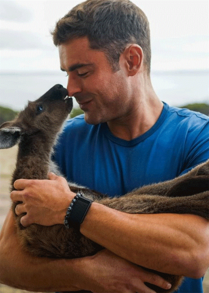 Ο Έφρον κοινοποίησε επίσης φωτογραφίες και βίντεο από το ταξίδι του στο νησί στο Instagram, μεταξύ άλλων μία στην οποία κρατά ένα μωρό καγκουρό και μία στην οποία κολυμπά με δελφίνια.