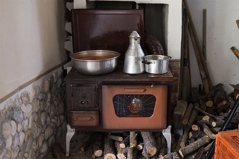 Με περηφάνια μας δείχνει τα σακιά με τα «προσανάματα» για τη σόμπα- ξερές κουκουνάρες που τις μάζεψε το καλοκαίρι. Τα ξύλα είναι ήδη στοιβαγμένα στο υπόστεγο. Θέλουν τουλάχιστον 15 τόνους ξύλα. Η θερμοκρασία μπορεί να φτάσει μέχρι και -20 βαθμούς Κελσίου, ενώ σίγουρα διαρκεί πολύ καιρό κάτω από το 0 °C, μέχρι τον Απρίλιο. Σόμπες και λέβητες καίνε «αβέρτα», λέει χαρακτηριστικά ο κ. Παπαβασιλείου.