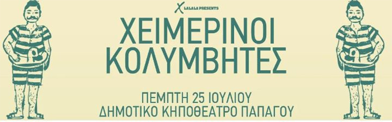 Οι Χειμερινοί Κολυμβητές θα εμφανιστούν στο Κηποθέατρο του Παπάγου σήμερα (25 Ιουλίου) σε πλήρη απαρτία. Θα παρουσιάσουν ένα πρόγραμμα εφ’ όλης της ύλης, τραγούδια από την 45χρονη και βάλε παρουσία τους στη μουσική σκηνή με οκτώ δίσκους και πολλά ανέκδοτα. Όπως γίνεται εδώ και πολλά χρόνια, θα διαμορφώσουν το πρόγραμμά τους βουτώντας στον παλμό της βραδιάς, ενώ θα πλαισιωθούν από φίλους που τραγουδούν και μέλη της χορωδίας Chorus Vivendi υπό τον Γιάννη Βρυζάκη.