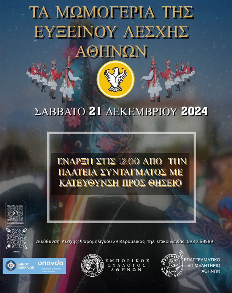 Η Εύξεινος Λέσχη Αθηνών παραμονές των Χριστουγέννων παρουσιάζει, στο κέντρο της Αθήνας, το λαϊκό παραδοσιακό δρώμενο των «Μωμόγερων», προερχόμενο από τα ήθη και τα έθιμα των Ποντίων και τον λαϊκό πολιτισμό τους.