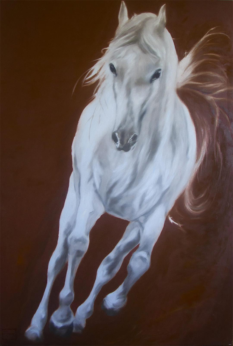 Με ένα βλέμμα που είναι ταυτόχρονα παιδικό και βαθιά ώριμο, η Καραδήμος φέρνει στα έργα της τον παλμό της κίνησης, το ρίγος της παρουσίας, την ευγένεια του ζώου — όχι ως σύμβολο, αλλά ως ίσο συνομιλητή. Τα άλογά της δεν τρέχουν για να φτάσουν κάπου· τρέχουν για να υπάρξουν. Τα ζώα της δε ζητούν την προσοχή μας· μας κοιτούν κατάματα και μας επιστρέφουν στη δική μας φύση.