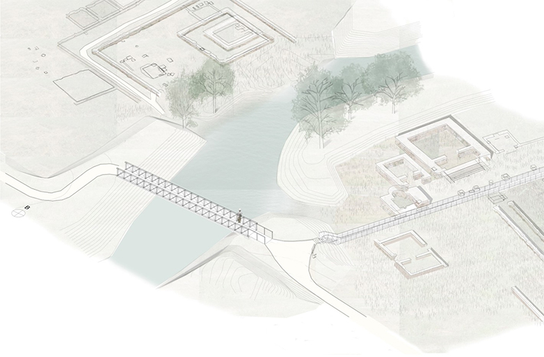Φωτορεαλιστική απεικόνιση της γέφυρας και της σύνδεσης με τα ιερά του αρχαιολογικού χώρου