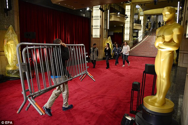 Οι προετοιμασίες έξω από το γνωστό θέατρο έχουν σχεδόν τελειώσει: το χαλί στρώθηκε και τα αγάλματα του θείου Όσκαρ που στολίζουν την είσοδο του Dolby Theater ψεκάστηκαν ώστε να φαίνονται πιο χρυσά.
