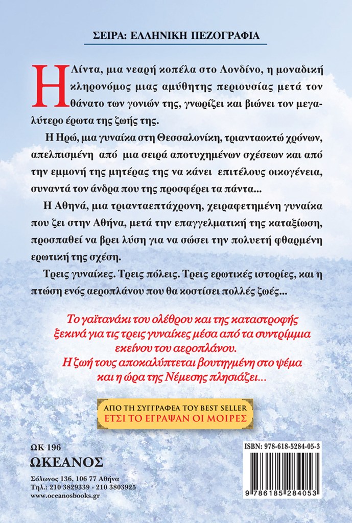 Το μάτι της Γερακίνας, διεισδυτικό, ψυχρό σαν ατσάλι, με την τεχνική ενός δημοσιογραφικού ρεπορτάζ σχεδόν, μπαίνει μέσα στην ψυχή τριών γυναικών που γίνονται ολοκαύτωμα για έναν προδομένο έρωτα, όταν η συντριβή ενός αεροπλάνου συντρίβει τα όνειρα και τις ελπίδες τους. Μέσα όμως από την καταστροφή αυτή γεννιέται και θριαμβεύει η αλήθεια.