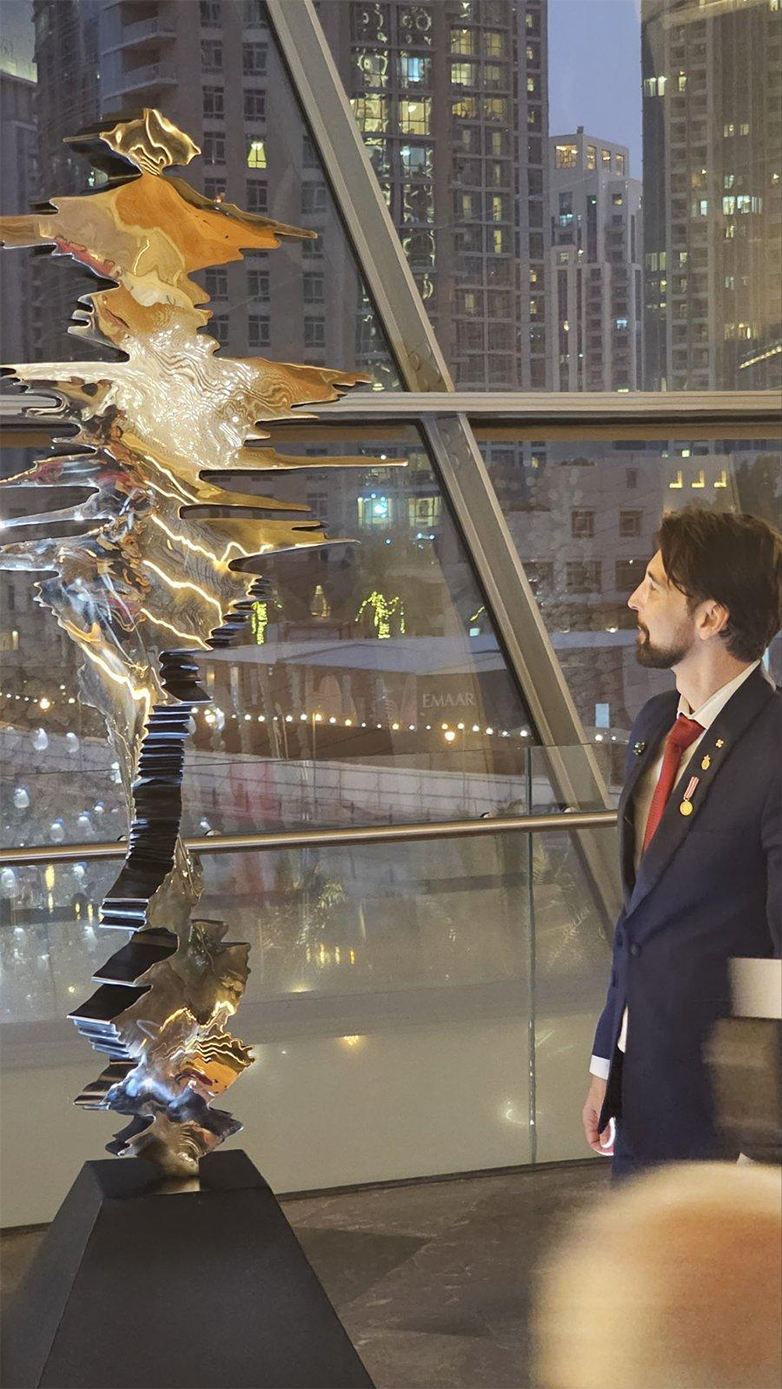 Στα αποκαλυπτήρια απηύθυνε χαιρετισμό ο Πρόξενος της Ελληνικής Πρεσβείας στο Άμπου Ντάμπι, Παναγιώτης Κούγιας, υπογραμμίζοντας τη διεθνή αξία της ελληνικής τέχνης και την παρουσία του έργου του Νίκου Φλώρου στο Ντουμπάι.