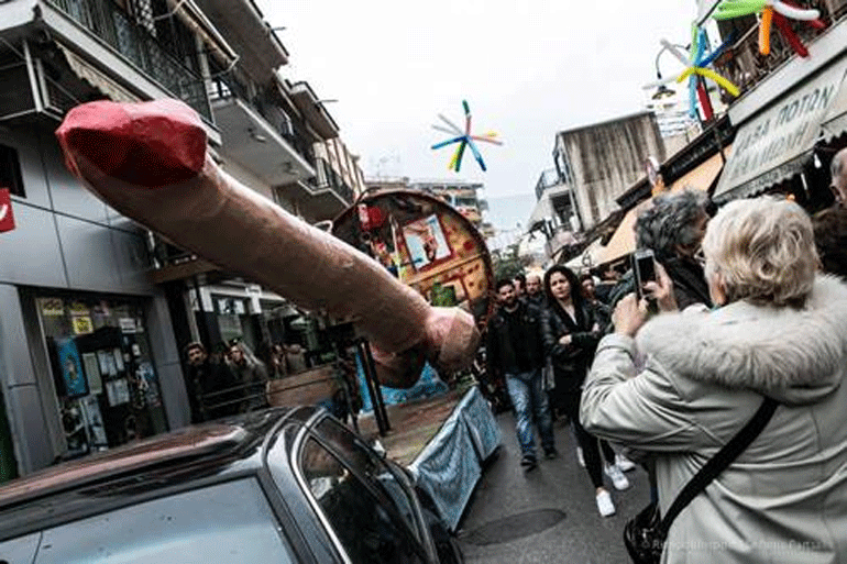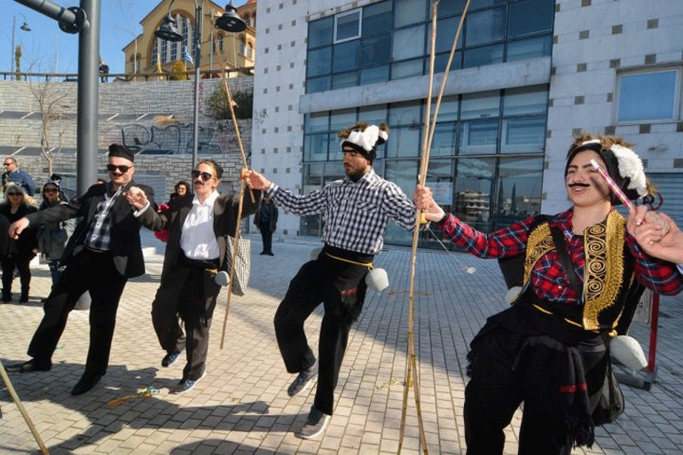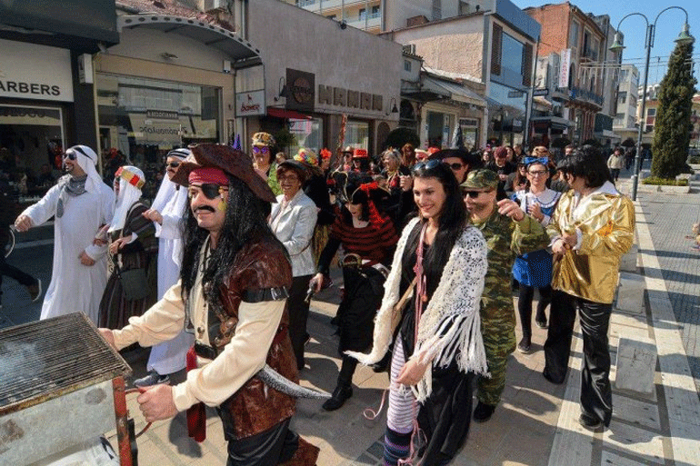 Την ημέρα της αποκριάς, ομάδες χορευτών των πολιτιστικών συλλόγων της πόλης αναβιώνουν τα παραδοσιακά έθιμα από κάθε σημείο της χώρας. Μεταμφιεσμένοι μουσικοί από τους συλλόγους δημιουργούν ομάδες (μπουλούκια) και με γκάιντες, νταούλια, κλαρίνα, κιθάρες, βιολιά ξεσηκώνουν την πόλη με τα τραγούδια τους, τους αστεϊσμούς και τις αθυροστομίες τους.
