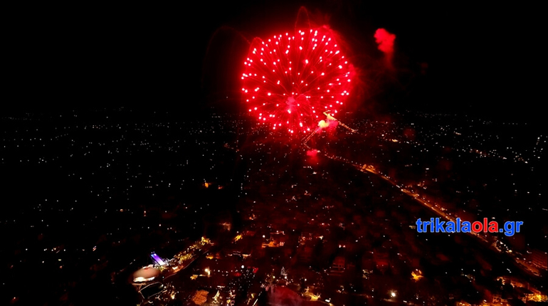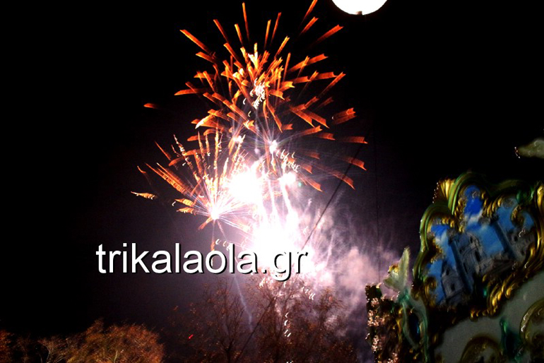 Τα ξωτικά, οι νεράιδες, οι άγγελοι, τα αερικά και φυσικά ο Αϊ Βασίλης, καλωσόρισαν τους επισκέπτες με ένα όμορφο πρόγραμμα παρουσίασης. Τα δεκάδες πολύχρωμα βεγγαλικά φώτισαν τον Τρικαλινό ουρανό, συμβάλλοντας στη γιορτινή ατμόσφαιρα. Ακολούθησε μουσική συναυλία με τους REC και τον Νικηφόρο.