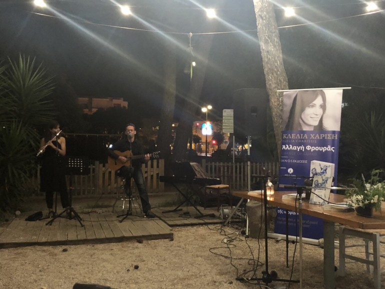 Απήγγειλαν οι ηθοποιοί της «θεατρικής Διαδρομής» Ελένη Αναγνωστοπούλου και Στράτος Καϊκης ενώ ακούστηκαν τραγούδια σε στίχους της ποιήτριας Κλέλιας Χαρίση από συνεργασίες της με μεγάλους καλλιτέχνες( Λάκης Παπαδόπουλος, Τζώρτζια Κεφαλά, Κρινιώ Νικολάου, Ζωή Τηγανούρια), ανάμεσά τους και η πρόσφατη συνεργασία της με το Λαυρέντη Μαχαιρίτσα ‘’Αγάπη Πλανόδια’’.