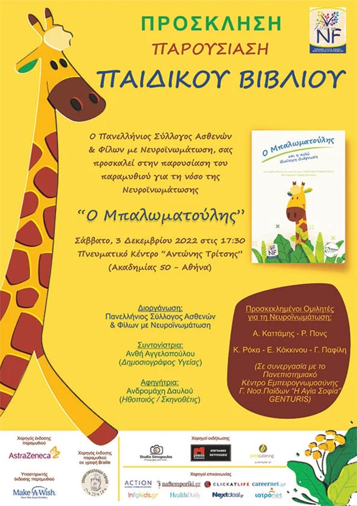 Πρόκειται για ένα παραμύθι, με πρωταγωνίστρια μία μικρή καμηλοπάρδαλη, που αναφέρεται στη διάγνωση και ανακοίνωση της νόσου στους μικρούς ασθενείς με Νευροϊνωμάτωση. Το παραμύθι προβάλει αισιόδοξα μηνύματα και προορίζεται να ενημερώσει με όσο πιο απλό και προσιτό τρόπο γίνεται τα παιδιά τα οποία πολύ συχνά ξεκινούν από μικρή ηλικία πληθώρα εξετάσεων, δύσκολες επεμβάσεις και θεραπείες.