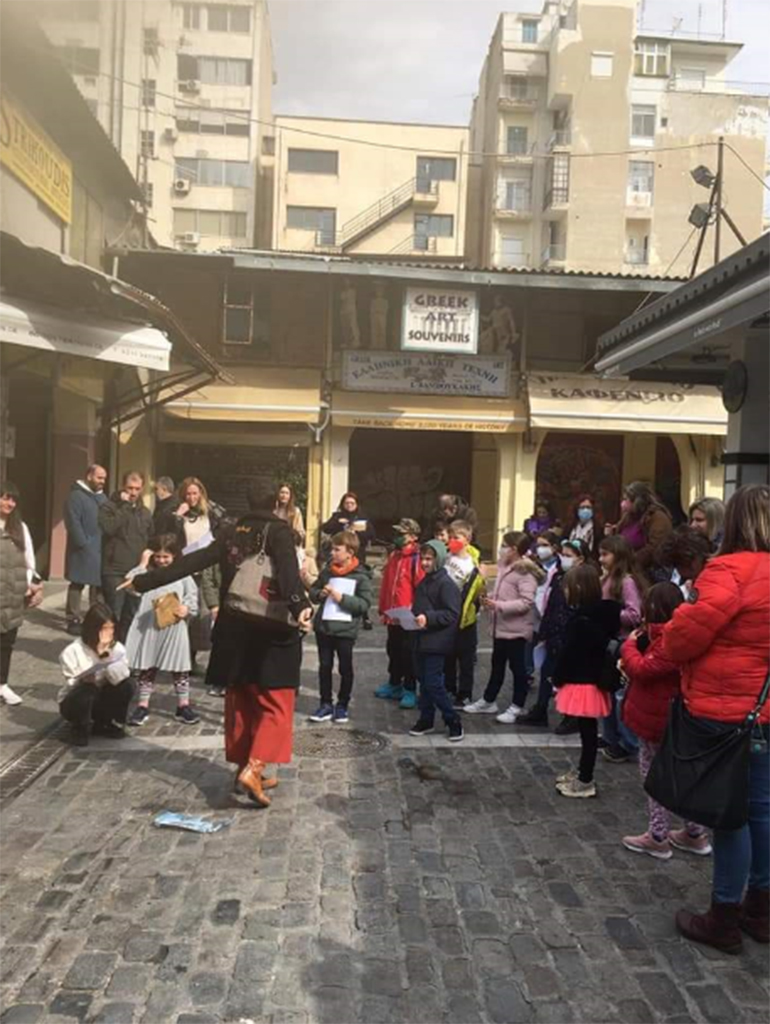 Η πανδημία έβαλε «φρένο» σε αυτά τα εργαστήρια, αλλά ταυτόχρονα, επειδή τόνισε την ανάγκη για εξωστρέφεια, γέννησε την ιδέα να γίνονται εξωτερικές δράσεις με τους εισηγητές των εργαστηρίων, όπως επισκέψεις σε μουσεία, σε εκθέσεις, σε ραδιοφωνικούς σταθμούς. «Ήθελα πολύ να κάνω κάτι με τα παιδιά σε εξωτερικούς χώρους, γιατί κλειστήκαμε και πιεστήκαμε πολύ όλοι μας αυτή τη διετία της πανδημίας. Αποφάσισα να υλοποιήσουμε δράσεις για να ανακαλύψουμε από κοινού την πόλη, τις γωνιές και τους κρυμμένους θησαυρούς της. Με ενδιέφερε να δούμε την ιστορία της Θεσσαλονίκης και να έρθουν τα παιδιά σε επαφή με ιστορικά γεγονότα που στο σχολείο ίσως δουλεύονται λίγο πιο κλειστά και μέσα από αυτά να μάθουν για την πυρκαγιά του 1917, τους Εβραίους και το εμπορικό κομμάτι της πόλης», εξηγεί.