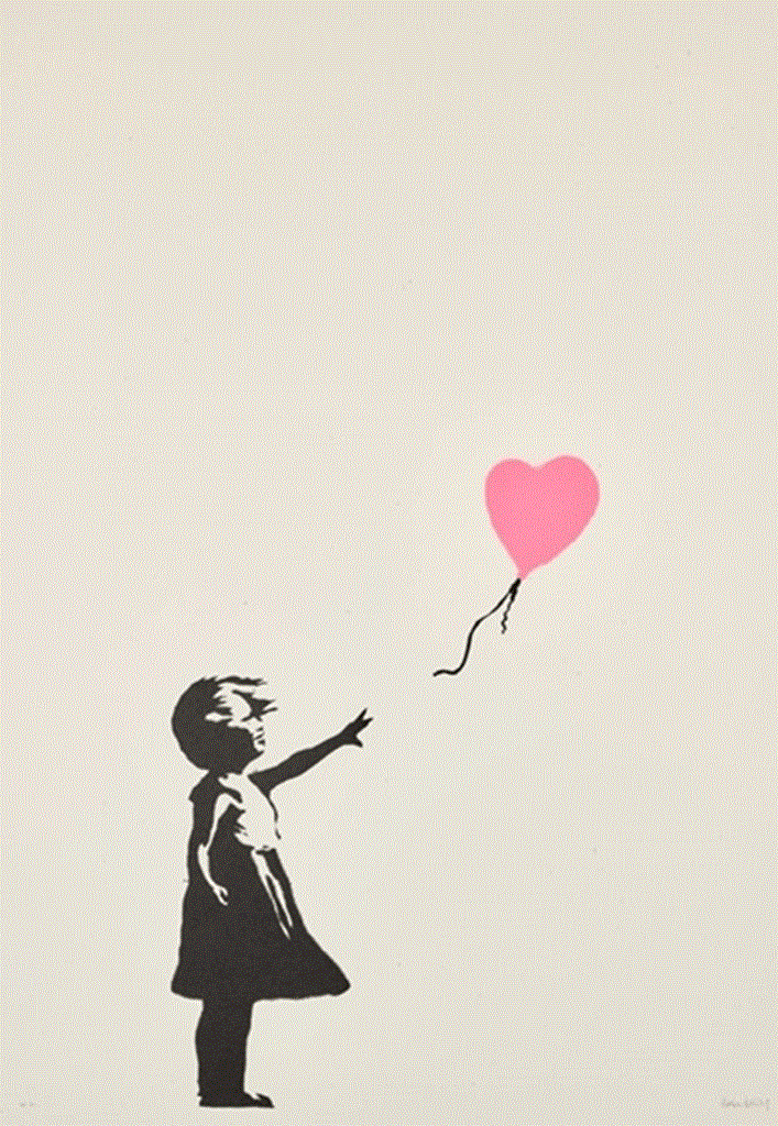 Ανάμεσα στα έργα τα οποία προσφέρονταν ήταν δύο εκδοχές του «Girl With Baloon» (το μοτίβο το οποίο ήταν στον πίνακα που έγινε αυτομάτως λωρίδες μετά την κατακύρωσή του σε αγοραστή σε δημοπρασία του Sotheby’s του Λονδίνου, το 2018). Η εκδοχή με ένα ροζ μπαλόνι πωλήθηκε αντί 375.000 λιρών ενώ η δεύτερη εκδοχή με ένα κόκκινο μπαλόνι πωλήθηκε αντί 106.250 λιρών.