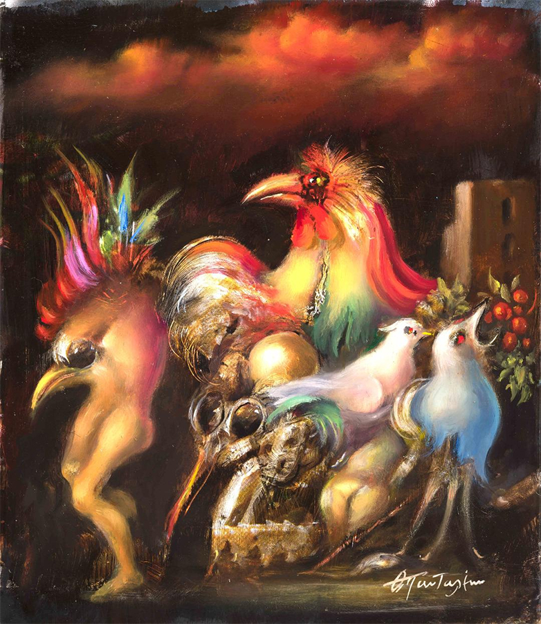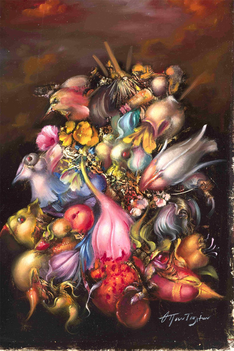 Σε αρκετά έργα του χρησιμοποιεί την εικόνα από ένα ιδεαλιστικό νεανικό πρόσωπο γυναίκας και συνδυάζει στοιχεία από το παρελθόν με αποσπασματικά και παραμορφωμένα στοιχεία από την αντικειμενική πραγματικότητα, ενώ αλλού παρεμβάλλεται στο έργο του ένα ακίνητο πουλί, δημιουργώντας μυστήριο στο σύνολο.