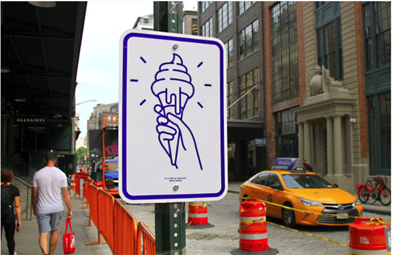 Σε διασκεδαστικές εικόνες που αιχμαλωτίζουν το μάτι του περαστικού μετέτρεψε τις εμβληματικές πινακίδες σήμανσης της Νέας Υόρκης το στούντιο ντιζάιν Burn & Broad στο πλαίσιο του πρότζεκτ «It’s a sign Trademark».