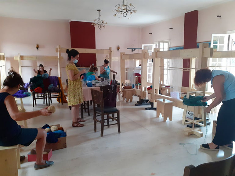 «Η ένταξή της, από το υπουργείο Πολιτισμού, στον Εθνικό Κατάλογο της Άυλης Πολιτιστικής Κληρονομιάς το 2019, αποτέλεσε σημαντικό στοιχείο. Το γεγονός αυτό, υπήρξε ουσιαστικά η αφορμή ώστε να ‘επανεκκινήσουν’ τα μαθήματα υφαντικής. Ας σημειώσουμε ότι η λειτουργία της Δομής Υφαντικής, παράλληλα με έκθεση/μουσείο υφαντικής, ήταν μέρος της πρότασης που υπέβαλε ο σύλλογός μας στην επιτροπή ‘Ελλάδα 2021’ για τα 200 χρόνια από την Επανάσταση. Έτσι, ανταποκρινόμενη στο αίτημα του συλλόγου, η Περιφέρεια Πελοποννήσου αποφάσισε να χρηματοδοτήσει εξ ολοκλήρου τη δομή. Το κόστος περιλάμβανε την κατασκευή 15 ξύλινων, ορθών αργαλειών από ντόπιους τεχνίτες, καθώς και των αντίστοιχων ‘εργαλείων’ (σκαμνιά, χτενάκια, ανέμες κλπ.), την αγορά των νημάτων και την αμοιβή των εκπαιδευτριών», σημειώνει η αντιπρόεδρος του Πολιτιστικού Συλλόγου Γερακίου. Και συμπληρώνει: «Ο Δήμος Ευρώτα μάς παραχώρησε πρόθυμα τον χώρο του Δημοτικού Ξενώνα για τη στέγαση των αργαλειών. Για τη διδασκαλία της τέχνης απευθυνθήκαμε σε έμπειρες υφάντρες του χωριού, από τις οποίες δύο προθυμοποιήθηκαν να αναλάβουν το έργο αυτό. Πρόκειται για τη Χρυσαφία Σίνη και τη Χρυσούλα Σταματοπούλου, που διδάχθηκαν την τέχνη από μεγαλύτερες γυναίκες του χωριού, συγγενικά τους πρόσωπα. Εκδήλωσαν ενδιαφέρον 22 άτομα (21 γυναίκες και 1 άντρας), ηλικιών 17 – 67 χρονών, που εκπαιδεύτηκαν από τον Ιούλιο έως τον Σεπτέμβριο, σε δύο τμήματα (πρωινό – απογευματινό). Οι μαθητές /μαθήτριες συμμετείχαν με ενθουσιασμό και κατασκεύασαν, υπό τις οδηγίες των εκπαιδευτριών, μικρά υφαντά», εξηγεί η συνομιλήτρια του ΑΠΕ-ΜΠΕ.