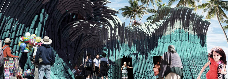 Στην ουσία, το «Νέο Κύμα» φιλοδοξεί να αναδείξει το πόσο βλαβερό είναι το πλαστικό για το θαλάσσιο περιβάλλον μας και πώς μπορεί να χρησιμοποιηθεί, ανακυκλωμένο, στην αρχιτεκτονική.