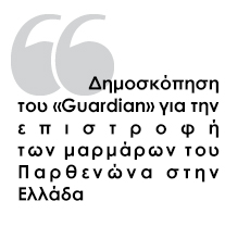 Η βρετανική εφημερίδα «Guardian» έχει προχωρήσει σε άτυπη δημοσκόπηση γνώμης, ερωτώντας τους αναγνώστες της ηλεκτρονικής της έκδοσης: «Πρέπει η Βρετανία να επιστρέψει τα Ελγίνεια μάρμαρα στην Ελλάδα;». Μέχρι στιγμής το 70% απαντά θετικά, ενώ το 30% αρνητικά. Η δημοσκόπηση θα διαρκέσει δύο ημέρες ακόμη.