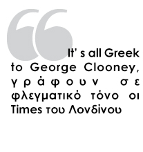 Πάντως, αρκετά φλεγματική είναι η απάντηση των «Times» του Λονδίνου οι οποίοι προχωρούν σε ένα γεμάτο ειρωνεία λογοπαίγνιο. Τίτλος του άρθρου τους: «It’ s all Greek to George Clooney». Η έκφραση «It’ s all Greek to me» είναι αντίστοιχη για τους αγγλόφωνους με την ελληνική «Μου φαίνονται όλα κινέζικα». Έτσι για ένα «ελληνικό» (greek) θέμα ο Τζορτζ Κλούνεϊ δεν καταλαβαίνει (it’ s all Greek to George Clooney) και άρα δεν έχει δικαίωμα γνώμης.
