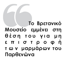Στην ίδια αμετακίνητη θέση βρίσκεται και το Βρετανικό μουσείο. Ο «Guardian» δημοσιεύει τη δήλωση – απάντηση της εκπροσώπου του μουσείου: «Οι επίτροποι (σ.σ. του μουσείου) ήταν πάντα πολύ ξεκάθαροι αναφορικά με τα οφέλη της παραμονής (σ.σ. των μαρμάρων) στο μουσείο όπου θα μπορούν να θεωρηθούν ως μέρος μιας παγκόσμιας συλλογής. Ο σκοπός του Βρετανικού Μουσείου είναι να παρουσιάσει στον κόσμο τον κόσμο». Παράλληλα, η εφημερίδα επισημαίνει στη δήλωση της εκπροσώπου «τον κίνδυνο της υπεραπλούστευσης του θέματος».