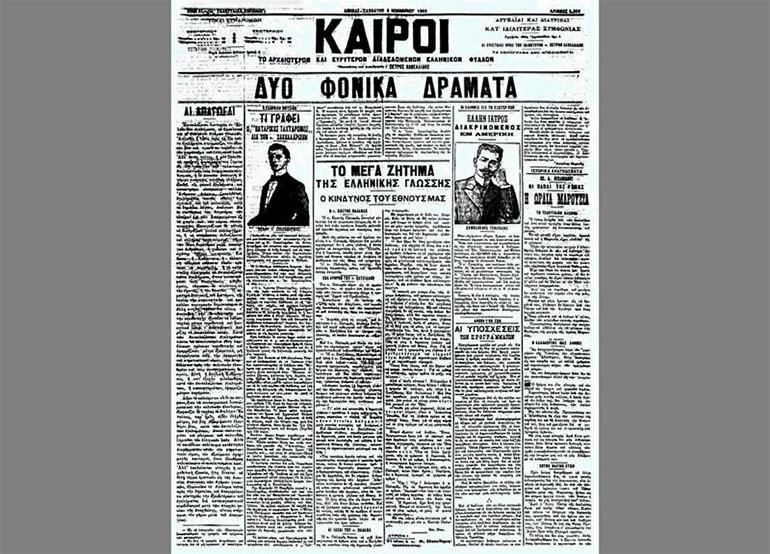 Αλλά το συγκεκριμένο δημοσίευμα δεν περιγράφει τίποτε από όλα αυτά. Αναφέρεται στα επεισόδια της προηγούμενης μέρας (8ης Νοεμβρίου 1901), που έμειναν στην ιστορία ως «Ευαγγελικά» ή «Ευαγγελιακά». Αιχμή των επεισοδίων υπήρξε η ελληνική γλώσσα. Για την ακρίβεια, η απόπειρα απόδοσης των Ιερών Ευαγγελίων στη δημοτική. Στην πραγματικότητα το… καζάνι είχε αρχίσει από καιρό να βράζει στην ελληνική πρωτεύουσα και «έσκασε» τη μέρα εκείνη (μια Πέμπτη του 1901), μέρα σαν τη σημερινή, πριν από ακριβώς 120 χρόνια. Οκτώ (κατά άλλες πηγές ένδεκα) άνθρωποι πλήρωσαν με τη ζωή τους εκείνα τα επεισόδια στην καρδιά της Αθήνας και άλλοι 70 τραυματίσθηκαν.