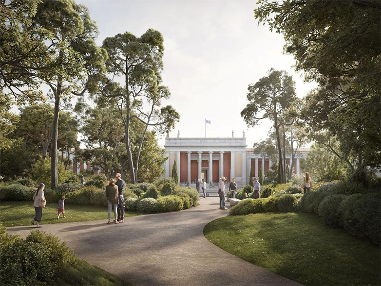 Φωτορεαλιστική απεικόνιση εξωτερικού χώρου του Εθνικού Αρχαιολογικού Μουσείου