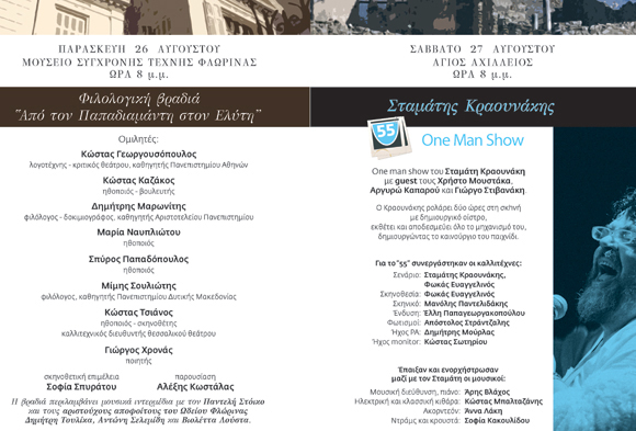 • Ο Κώστας Καζάκος, μυημένος στη μαγεία των «Πρεσπών», θα κοσμήσει την εκδήλωση της Φλώρινας, διαβάζοντας Αλέξανδρο Παπαδιαμάντη.