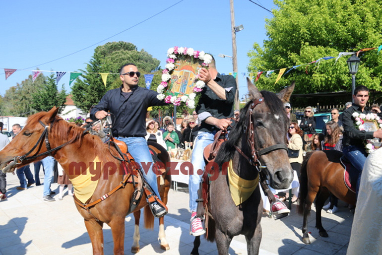 To έθιμο της περιφοράς της εικόνας του Αϊ Γιώργη αναβίωσε και εφέτος από τους Καβαλάρηδες του χωριού Άγιος Θωμάς στην Πρέβεζα ανήμερα της Κυριακής του Θωμά που συνέπεσε με τη γιορτή του Αγίου Γεωργίου.