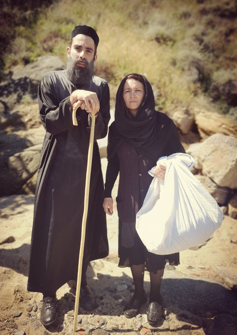 Ένας απ’ αυτούς ο 28χρονος Βασίλης Παπαζαχαρίας, που ζει κι εργάζεται στην περιοχή και για μία μέρα κλήθηκε να …γίνει ο συνονόματος προπάππους του. Εκείνος που μόλις στα είκοσί του χρόνια έφυγε μαζί με τους υπόλοιπους πρόσφυγες από τη Αφησιά, έναν αιώνα πριν. Ο Βασίλης κατέβηκε από τη βάρκα κρατώντας με τον αδερφό του το μπαούλο με την εικόνα της Παναγιάς της Ελεούσας και με το μυαλό φορτωμένο με τις θύμησες και εικόνες που του τις περιέγραψαν οι συγγενείς του.