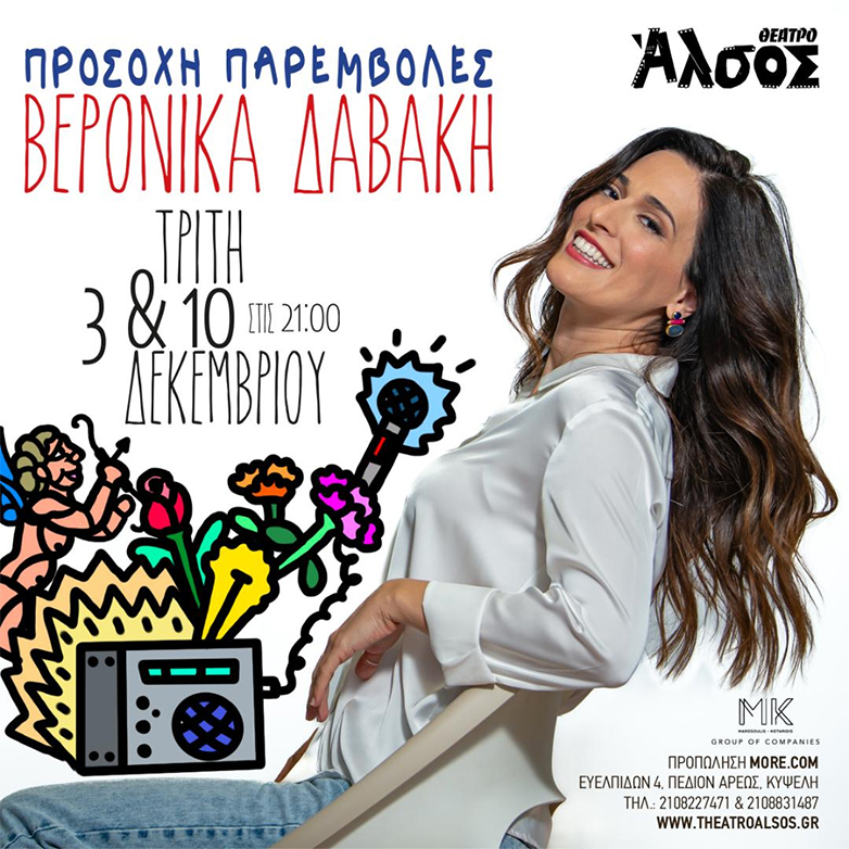 Η Βερόνικα Δαβάκη έρχεται στο Θέατρο Άλσος την Τρίτη 3 και 10 Δεκεμβρίου παρέα με πέντε μουσικούς και τον εικαστικό Σπύρο Αγγελόπουλο σε μια πρωτότυπη μουσική παράσταση.