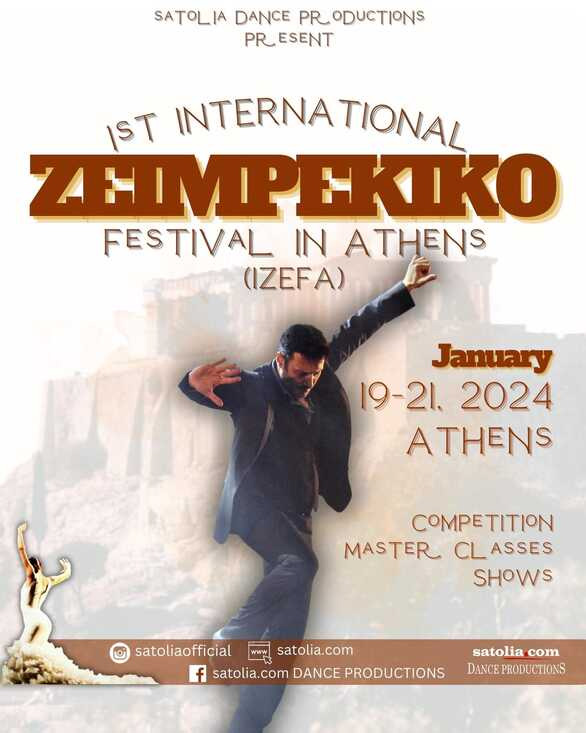 Με ένα μαγευτικό ταξίδι στις ρίζες του πιο αγαπημένου χορευτικού ρυθμού των Ελλήνων, το ζεϊμπέκικο, θα πραγματοποιηθεί το 1o Διεθνές Φεστιβάλ Ζεϊμπέκικου χορού στην Ελλάδα (ΙΖΕΦΑ) από τις 19 έως τις 21 Ιανουαρίου με τη συνεργασία και τη συμμετοχή επαγγελματιών και φίλων του Ζεϊμπέκικου από όλο τον κόσμο!