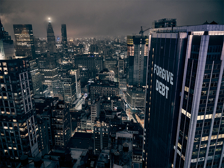 Έκκληση για δράση απηύθυνε η καλλιτεχνική ομάδα «The Illuminator» με την προβολή μηνυμάτων στο άνω μέρος ουρανοξύστη του Μανχάταν στη Νέα Υόρκη, διαμαρτυρόμενη για την αντίδραση της αμερικανικής κυβέρνησης στην πανδημία. «Free care for Covid», «Healthcare for all», «DC: more aid to NYC» ήταν κάποια από τα φωτεινά άσπρα μηνύματα, πλάτους περίπου 20 μέτρων, που εμφανίστηκαν στον ουρανοξύστη, ο οποίος δεν απέχει πολύ από το Empire State Building.