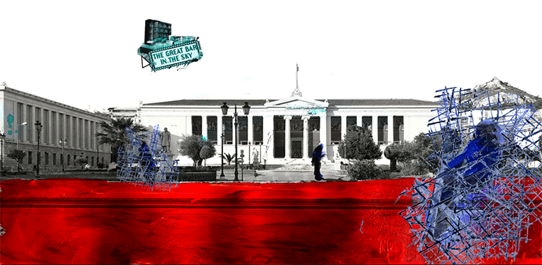 Τέλος, η Χριστίνα Χρυσανθοπούλου και η Όλγα Χατζηφώτη μάς προσφέρουν ένα παιχνίδι-περιπέτεια μέσα σε μια «άλλη» Αθήνα, που κινείται μεταξύ δυστοπίας και ουτοπίας, υποταγής και επανάστασης, με το «The Great Bar in the Sky».