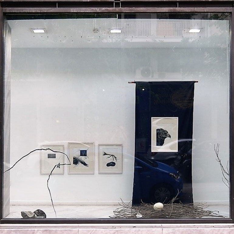 Όσο για το περιβάλλον στο οποίο θα «ζουν» κατά τη διάρκεια της έκθεσης τα πτηνά, το επιμελήθηκε ο Γιάννης Αργυριάδης, ο άνθρωπος που εμπνεύστηκε τις Βιτρίνες Τέχνης του ΟΤΕ και τρέχει το project από την πρώτη στιγμή. «Υπάρχουν εγκαταστάσεις με φωλιές, αβγά και σχέδια, στους τοίχους, στο πάτωμα, ακόμη και κρεμασμένα από το ταβάνι…», είπε ο καλλιτέχνης, ευχαριστώντας τον κ. Αργυριάδη.