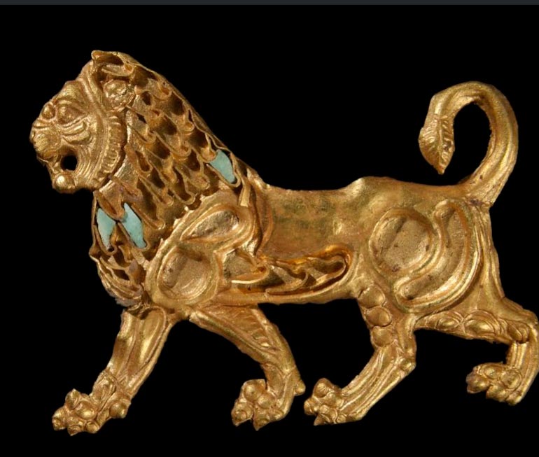 Η έκθεση οργανώθηκε στην αίθουσα με βάση δύο κυκλικές κατασκευές του ιερού. Η πρώτη είναι ο θεατρικός κύκλος με αναβαθμούς για όρθιους θεατές, βωμό στο κέντρο και βάθρα αγαλμάτων στην περιφέρεια από τα οποία σώθηκαν πολλές χάλκινες βλεφαρίδες. Εκεί βρέθηκε το χρυσό λιονταράκι περσικής προέλευσης που κοσμούσε κάποιο ρούχο ή αντικείμενο.