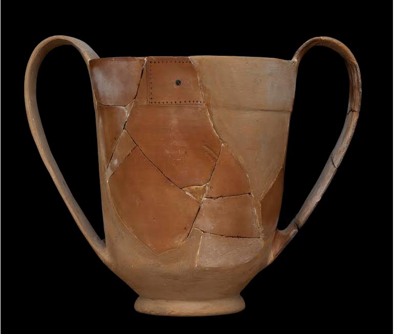 Σημαντικό μεμονωμένο έκθεμα είναι ο πεσσός με την απαγόρευση της εισόδου στο ιερό στους μη μυημένους: ‘Αμύητον μη εισιέναι’ και στα λατινικά: ‘Deorum sacra qui non acceperunt non intrant’.
