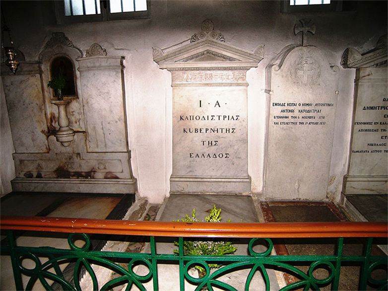 Στις 5:35 το πρωί της 27ης Σεπτεμβρίου 1831 ο Ιωάννης Καποδίστριας δέχθηκε δολοφονική επίθεση από τον Κωνσταντίνο και τον Γεώργιο Μαυρομιχάλη έξω από την εκκλησία του Αγίου Σπυρίδωνα, όπου μετέβαινε για να εκκλησιασθεί και έπεσε νεκρός.