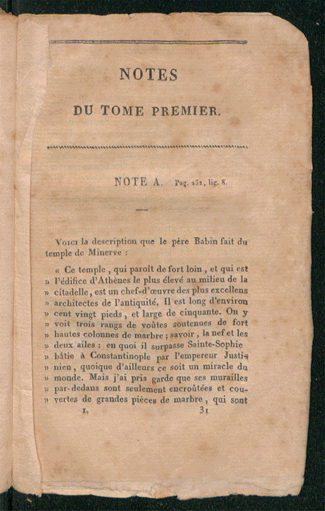 Ανάμεικτα τα συναισθήματα, λοιπόν: «Την λαμπρήν αυτήν εικόνα της Αττικής, το θαυμάσιον αυτό θέαμα είχαν ήδη αντικρύσει άνθρωποι και προ δύο χιλιάδων ετών. Κι εγώ θέλω παρέλθει και άλλοι, όπως εγώ… Θνητοί θα απέλθουν από αυτόν τον κόσμον, σκεπτόμενοι τα ίδια επάνω σε τούτα τα ερείπια […] Κατοικεί ο Τούρκος δισδάρης (φρούραρχος) στα αριστουργήματα του Φειδίου και του Ικτίνου. Ποτέ όμως δεν ηρώτησε ποιος λαός εδημιούργησε και κατέλιπεν τα ερείπια αυτά… ».