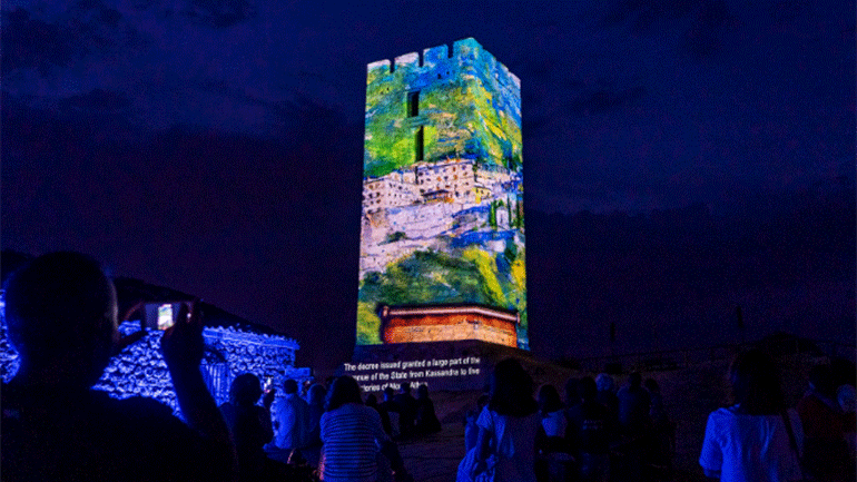 Ο αρχαιολόγος της Εφορείας Αρχαιοτήτων Χαλκιδικής και Αγίου Όρους, Νικόλαος Μερτζιμέκης, εξηγεί στο ΑΠΕ-ΜΠΕ ότι το τρισδιάστατο αυτό ντοκιμαντέρ δημιουργήθηκε από την Εφορεία Αρχαιοτήτων (Υπουργείο Πολιτισμού και Αθλητισμού) με σκοπό να προβάλλεται στον πύργο, ενώ μέρος του έχει σταλεί ως υποψηφιότητα στον διεθνή διαγωνισμό «Museum in Short», που διοργανώνεται κάθε χρόνο για μικρής διάρκειας προβολές που σχετίζονται με μουσεία και άλλους πολιτιστικούς οργανισμούς.
