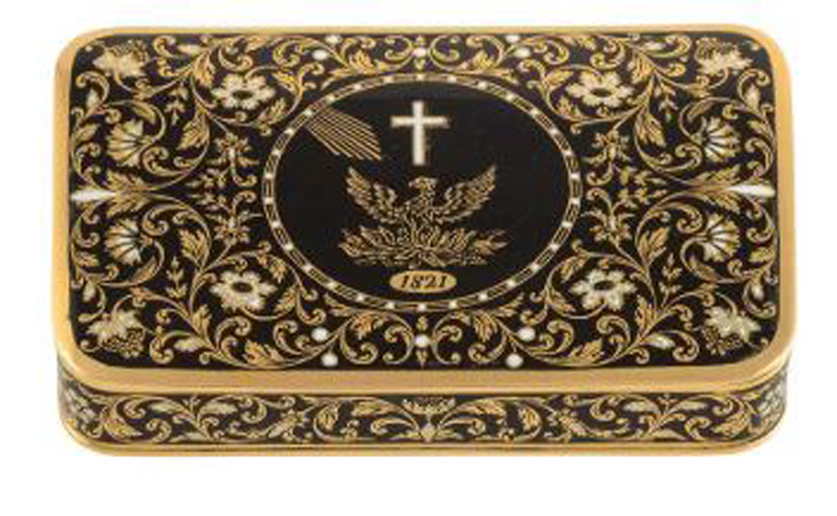 Σε δημοπρασία από τον Οίκο Βέργος βγαίνει στις 15 Δεκεμβρίου η χρυσή ταμπακιέρα του Ιωάννη Καποδίστρια, με τιμή εκτίμησης 30.000 – 40.000 ευρώ.