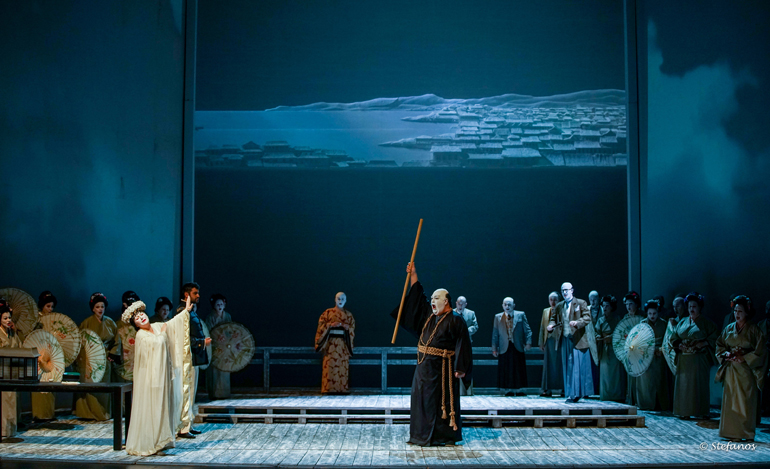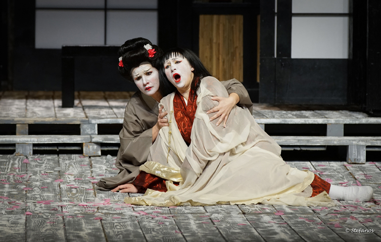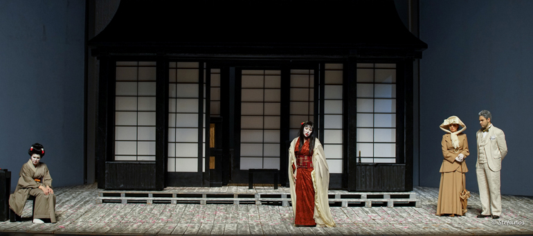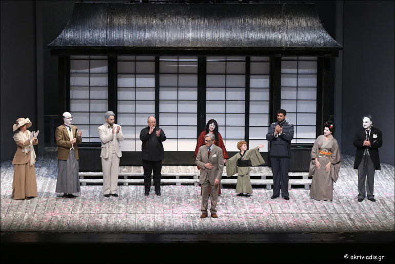 Η «δυτική ματιά» της σκηνοθεσίας του Νίκου Σ. Πετρόπουλου στην «ιστορία που εκτυλίσσεται στην Ιαπωνία στις αρχές του 20ού αιώνα», τα ιδιαιτέρως λιτά σκηνικά και τα παραδοσιακά ιαπωνικά κοστούμια έφτιαξαν το ιδανικό περιβάλλον για την εξιστόρηση του μοιραίου έρωτα της δεκαπεντάχρονης γκέισας Τσο-Τσο-Σαν για τον Μπέντζαμιν Φράνκλιν Πίνκερτον, υποπλοίαρχο του Ναυτικού των Ηνωμένων Πολιτειών της Αμερικής.