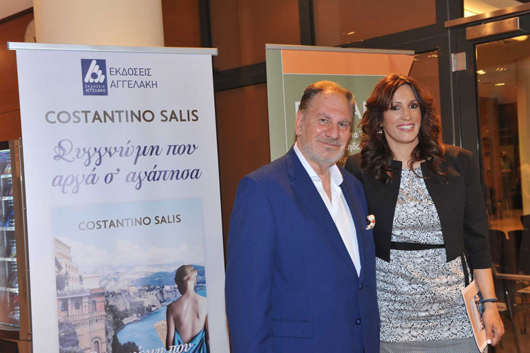 Ο Costantino Salis με την ηθοποιό Μπέσσυ Μάλφα η οποία τραγούδησε και διάβασε αποσπάσματα του βιβλίου «Συγγνώμη που αργά σ’ αγάπησα».
