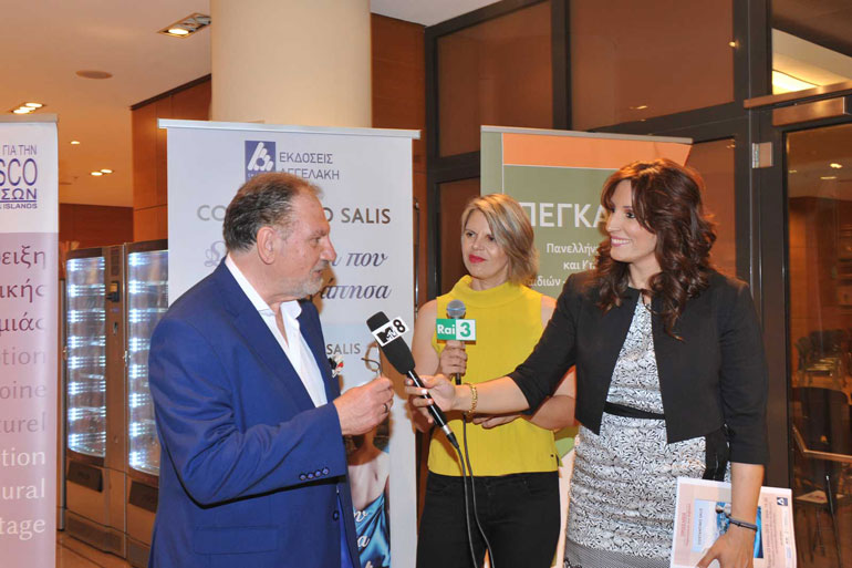 Ο Costantino Salis δίνει συνέντευξη στην Ιταλίδα δημοσιογράφο της Rai3 Marina Kaffes και στην Κλέλια Χαρίση, παρουσιάστρια της εκδήλωσης για λογαριασμό του ιταλικού καναλιού Mtv 8.