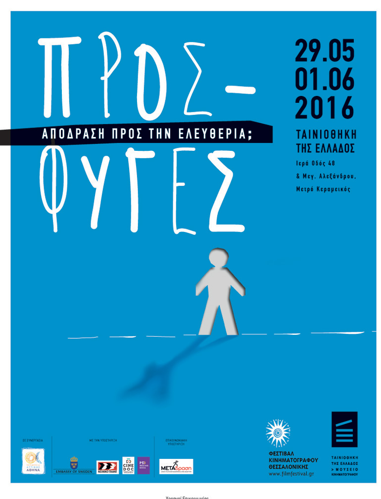 Το αφιέρωμα «Πρόσφυγες: Απόδραση προς την ελευθερία;», το οποίο πραγματοποιήθηκε με επιτυχία στο 18ο Φεστιβάλ Ντοκιμαντέρ Θεσσαλονίκης – Εικόνες του 21ου Αιώνα, παρουσιάζεται από την Κυριακή 29 Μαΐου έως και την Τετάρτη 1η Ιουνίου 2016, στην Ταινιοθήκη της Ελλάδος. H δράση αποτελεί διοργάνωση του Φεστιβάλ Κινηματογράφου Θεσσαλονίκης και της Ταινιοθήκης της Ελλάδος, σε συνεργασία με την Περιφέρεια Αττικής.