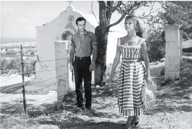Η Αλίκη Βουγιουκλάκη και ο Ανδρέας Μπάρκουλης στην ταινία «Διακοπές στην Αίγινα».
